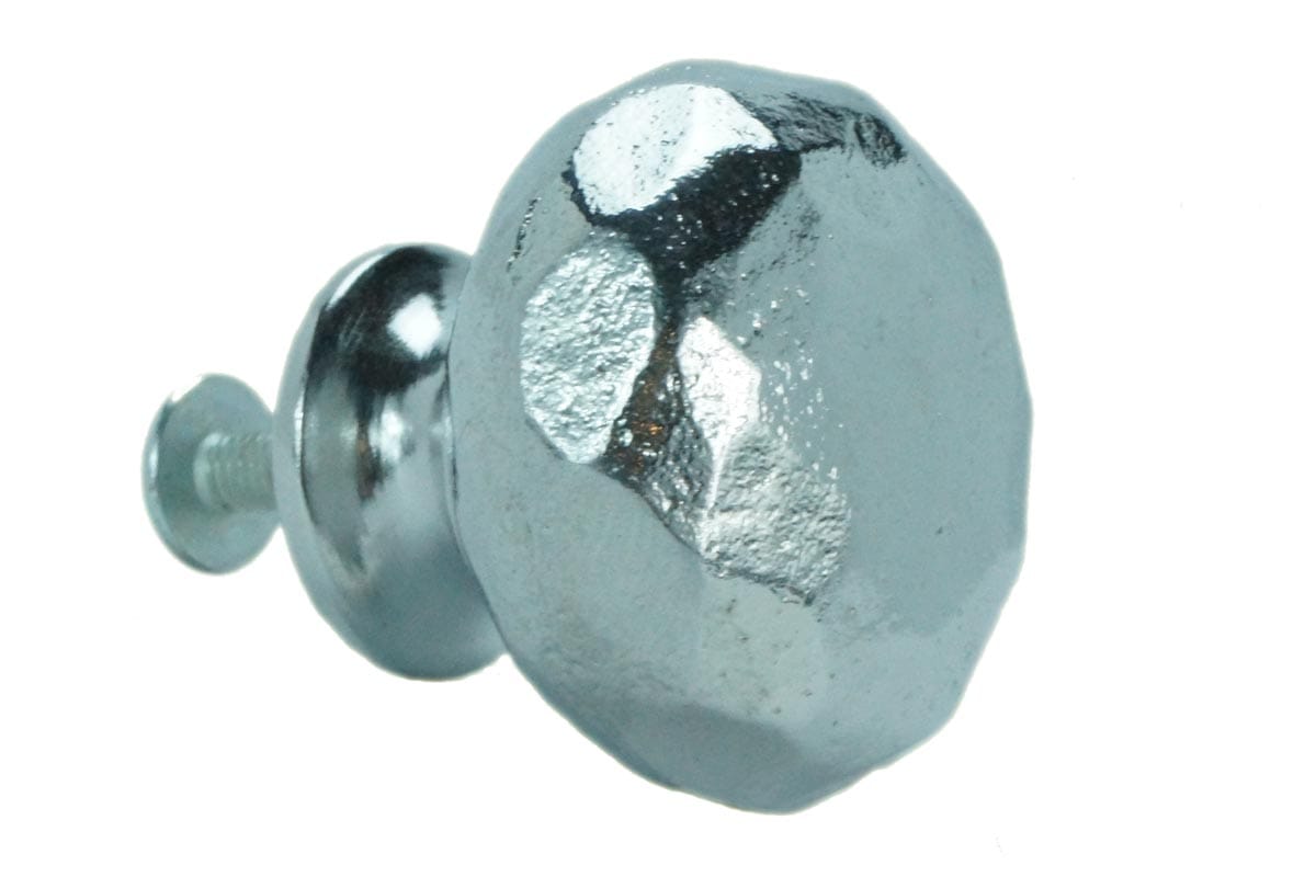 1-1/4″ diameter knob has a unique hammered look. Knob has a machined back and comes with a threaded mounting screw.